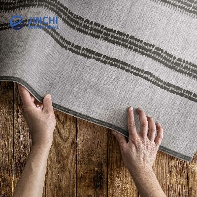 Gray striped PVC rug, bohemian style